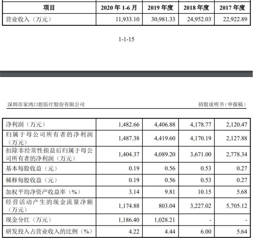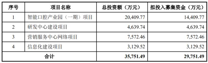 家鴻口腔此次公開發(fā)行不超過2636.44萬股,擬募集資金總額不超過2.98億元,在扣除發(fā)行費用后,擬用于:智能口腔產(chǎn)業(yè)園(一期)項目、研發(fā)中心建設項目、營銷服務中心網(wǎng)絡項目、信息化建設項目。