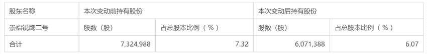 據(jù)悉,崇福銳鷹二號(hào)原合計(jì)持有鴻泉物聯(lián)無限售條件流通股份為835.14萬股,占公司總股本比例為8.35%,其已于11月16日至11月19日通過大宗交易方式減持公司股份102.64萬股,占公司總股本1.03%。