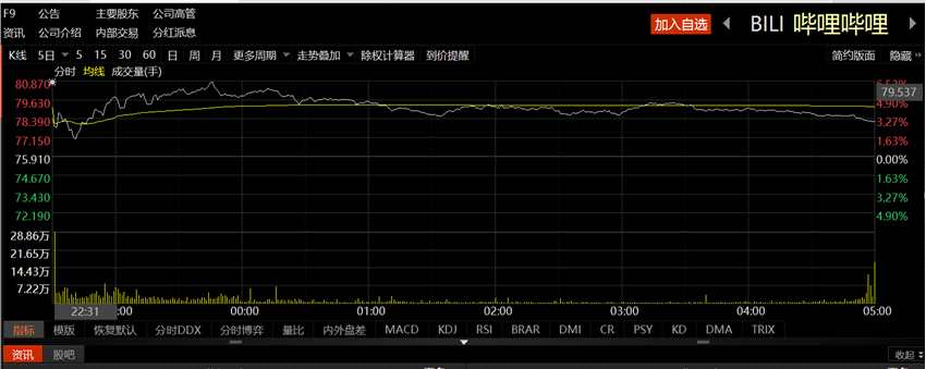 摘要: 12月15日,獲悉,截至12月14日收盤,嗶哩嗶哩(BILI.US)漲3.02%,報(bào)78.20美元,股價(jià)創(chuàng)收盤歷史新高。