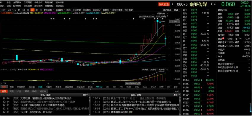 二級(jí)市場(chǎng)方面,寰亞傳媒今日股價(jià)慘遭暴跌,截至發(fā)稿,寰亞傳媒股價(jià)報(bào)于0.06港元,錄得25%的跌幅,最新總市值僅為1.28億港元。