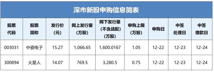 A股IPO|中瓷電子、火星人新股將于12月22日開(kāi)始申購(gòu)