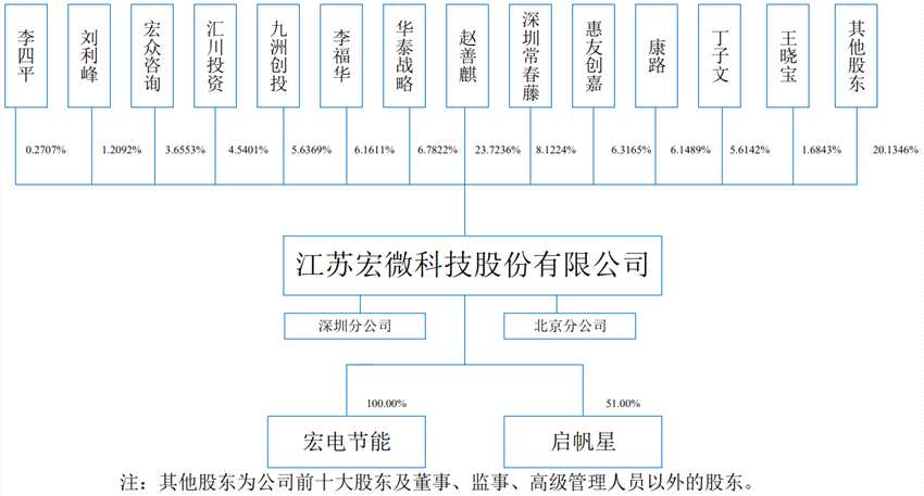 截至招股說明書簽署日,宏微科技的股權(quán)結(jié)構(gòu)及投資結(jié)構(gòu)如下: