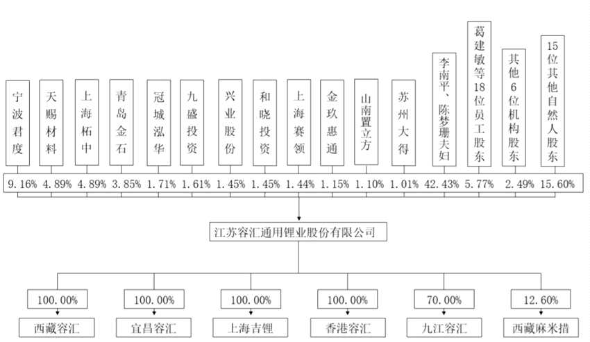 容匯鋰業(yè)控股股東和實際控制人為李南平、陳夢珊夫婦,截至本招股說明書簽署之日,李南平、陳夢珊夫婦合計持有公司17359.965萬股股份,占公司發(fā)行前總股本的42.43%。李南平現(xiàn)任公司董事長,陳夢珊現(xiàn)任公司副董事長、總經(jīng)理。