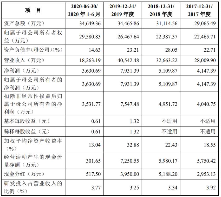 寧波色母主要從事色母粒的研發(fā)、生產(chǎn)、銷售和技術(shù)服務(wù),致力于為客戶提供塑料著色定制化產(chǎn)品,精準(zhǔn)滿足客戶塑料著色和功能需求,是一家具有自主研發(fā)和創(chuàng)新能力的高新技術(shù)企業(yè)。2017年至2020年6月,公司實現(xiàn)的營業(yè)收入分別為2.8億元、3.27億元、4.05億元、1.83億元;同期實現(xiàn)的歸屬于母公司股東的凈利潤分別為4147.39萬元、5109.87萬元、7931.39萬元、3630.69萬元。