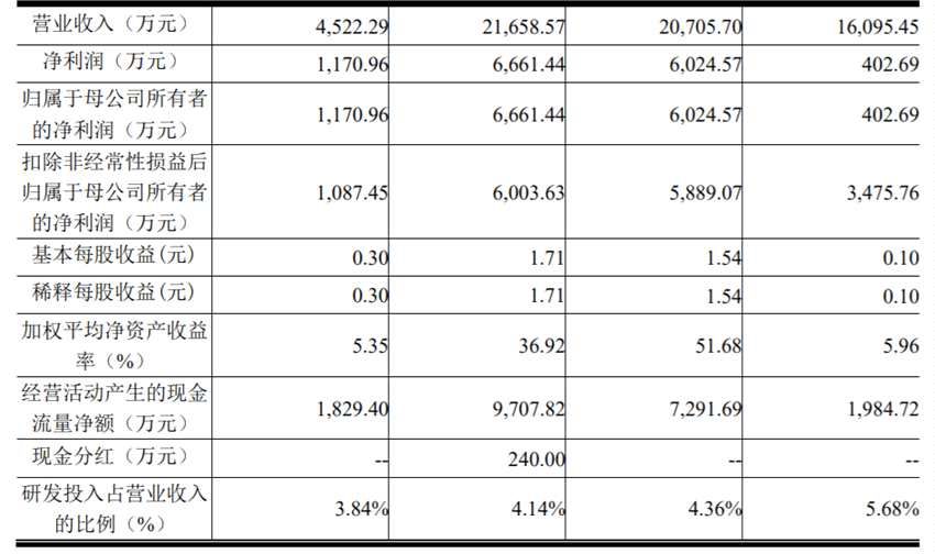 前進(jìn)科技是一家專業(yè)從事鋁合金冷凝式熱交換器研發(fā)、生產(chǎn)和銷售的高新技術(shù)企業(yè),主要產(chǎn)品是鋁合金冷凝式熱交換器。2017年至2020第一季度,公司實現(xiàn)的營業(yè)收入分別為1.61億元、2.07億元、2.17億元、4522.29萬元;同期實現(xiàn)的歸屬于母公司股東的凈利潤分別為402.69萬元、6024.57萬元、6661.44萬元、1170.96萬元。