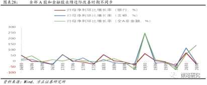從全部A股業(yè)績的變化來看,單季度改善最明顯的發(fā)生在今年二季度,全部A股非金融二季度業(yè)績環(huán)比大幅增加139%。對于大金融板塊而言,三季度將是業(yè)績邊際改善最顯著的時期,二季度單季度利潤下滑24%,但營收一季度增長7.2%,二季度增長5.3%,營收下滑的幅度其實非常有限,因此壓降利潤的要求一旦有所放松,會帶來利潤增速的顯著反彈。