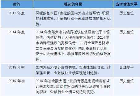 近10年來,金融股大漲的情形大致出現(xiàn)過四次,分別是2012年底、2014年底、2018年初以及2019年初,金融股在年末年初爆發(fā)的概率較高,且估值低帶來了更多安全邊際。