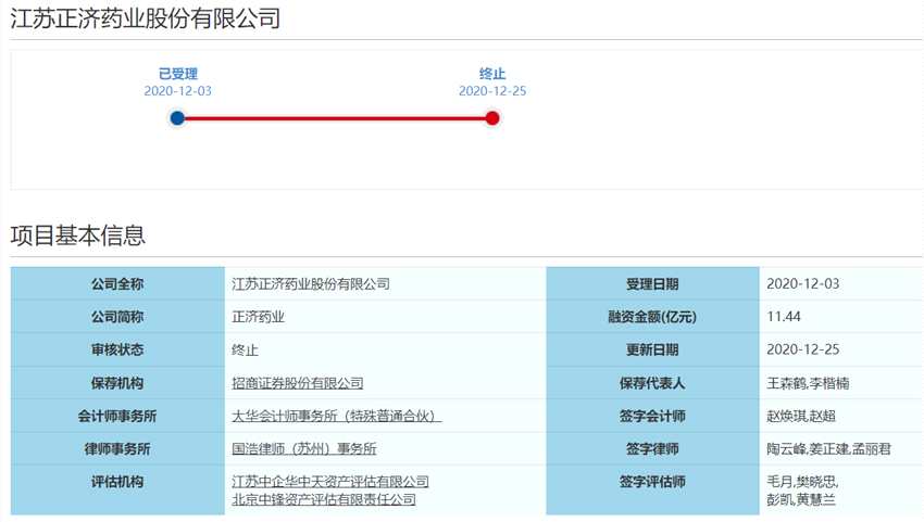 2020年12月23日,正濟(jì)藥業(yè)和保薦人招商證券股份有限公司分別向上交所提交了《江蘇正濟(jì)藥業(yè)股份有限公司關(guān)于撤回首次公開發(fā)行股票并在科創(chuàng)板上市申請文件的申請》和《招商證券股份有限公司關(guān)于撤回江蘇正濟(jì)藥業(yè)股份有限公司首次公開發(fā)行股票并在科創(chuàng)板上市申請文件的申請》,申請撤回申請文件。根據(jù)《上海證券交易所科創(chuàng)板股票發(fā)行上市審核規(guī)則》第六十七條的有關(guān)規(guī)定,上交所決定終止對正濟(jì)藥業(yè)首次公開發(fā)行股票并在科創(chuàng)板上市的審核。