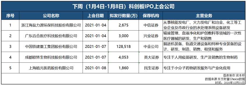 據(jù)科創(chuàng)板上市委公告顯示,下周(1月4日-1月8日),科創(chuàng)板依然將迎來5家企業(yè)的上會: