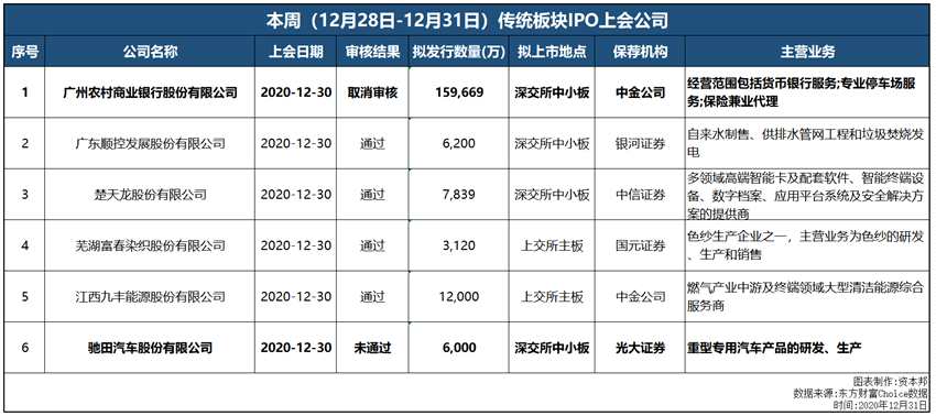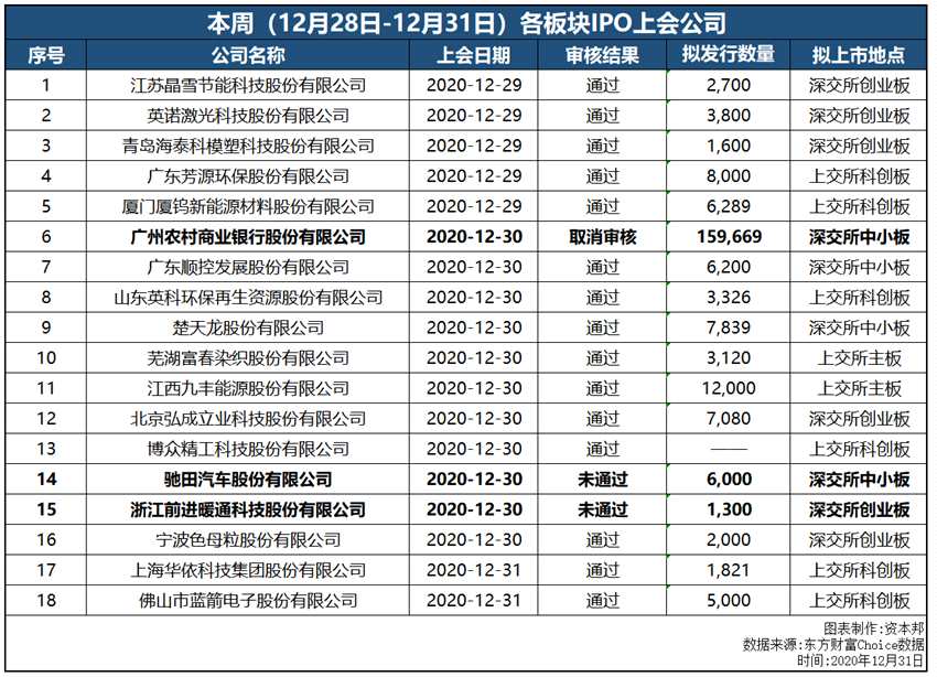 IPO周報(bào):受理增速!2020年IPO收官,廣州農(nóng)商行等三公司遺憾錯過“末班車”
