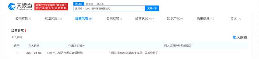 1月11日,獲悉,天眼查顯示,近日,蛋殼公寓關(guān)聯(lián)公司紫梧桐(北京)資產(chǎn)管理有限公司被北京市東城區(qū)市場監(jiān)督管理局列入經(jīng)營異常名錄,原因為公示企業(yè)信息隱瞞真實情況、弄虛作假。