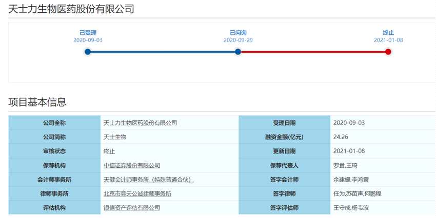 新年第一家!天士生物終止科創(chuàng)板IPO