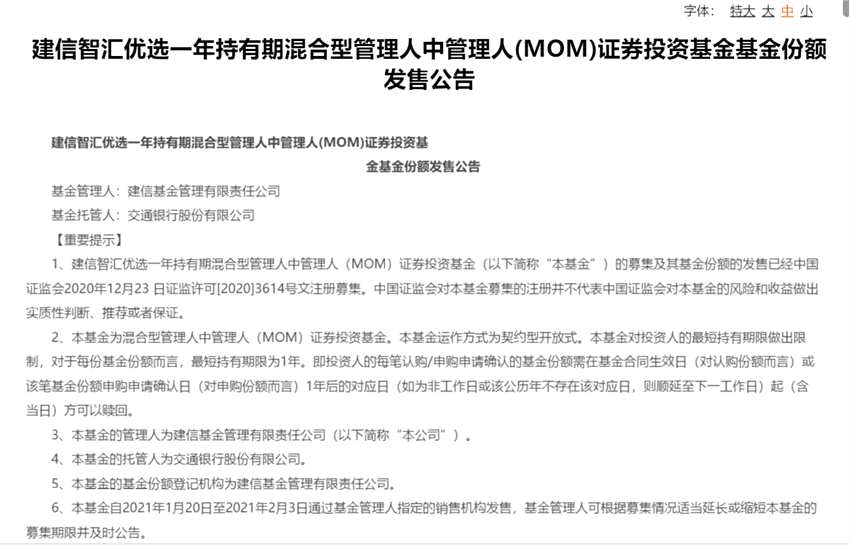下周三!首只MOM基金發(fā)行來襲,募集規(guī)模上限50億元