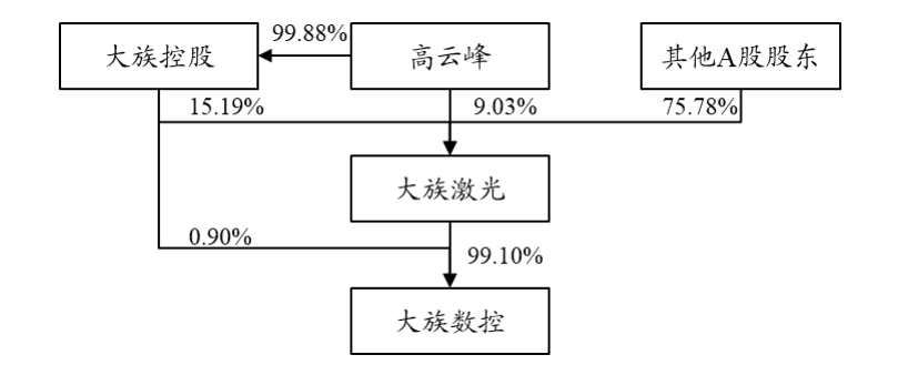 截至2020年9月30日,大族激光直接持有大族數(shù)控99.10%的股權(quán),是大族數(shù)控的控股股東。高云峰直接持有大族激光9.03%股份,通過(guò)大族控股間接持有大族激光15.19%股份,合計(jì)持有大族激光24.22%股份,為大族激光實(shí)際控制人。高云峰通過(guò)大族激光間接控制大族數(shù)控,為大族數(shù)控實(shí)際控制人。