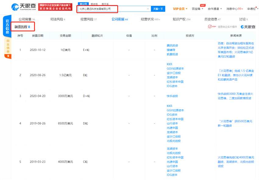 天眼查數(shù)據(jù)顯示,火花思維自成立以來已經(jīng)完成了8輪融資,僅2020年更是完成了3輪融資,投資方包括騰訊、快手等行業(yè)巨頭以及紅杉資本等知名投資機(jī)構(gòu)。