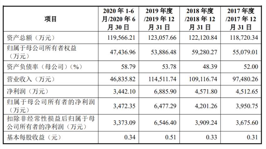 2017年至2020年上半年,國光信息分別實(shí)現(xiàn)營業(yè)收入9.75億元、10.91億元、11.45億元、4.69億元;實(shí)現(xiàn)凈利潤4,512.65萬元、4,571.80萬元、6,885.90萬元、3,442.10萬元。