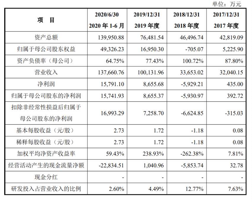 2017年至2020年上半年,中自環(huán)保分別實(shí)現(xiàn)營業(yè)收入3.20億元、3.37億元、10.01億元、13.77億元;實(shí)現(xiàn)歸母凈利潤392.72萬元、-5,930.97萬元、8,655.37萬元、1.57億元。
