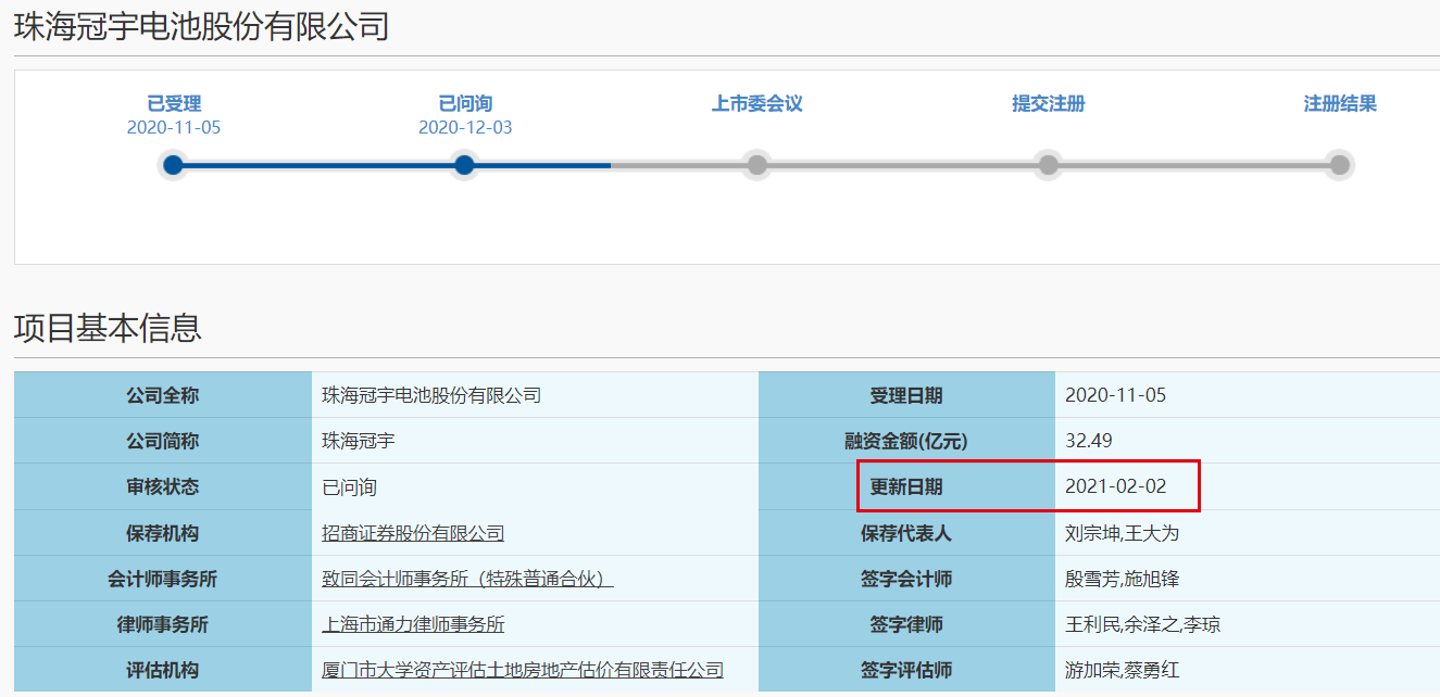 2月3日,了解到,珠海冠宇電池股份有限公司(以下簡稱:珠海冠宇)于2月2日回復科創(chuàng)板IPO首輪問詢。