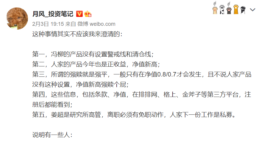 而馮柳更是在當天下午4點左右,在微博轉(zhuǎn)發(fā)高毅資產(chǎn)文章《致廣大而盡精微,高毅資產(chǎn)孫慶瑞詳談從宏觀到個股的進化過程》,疑是變相辟謠。