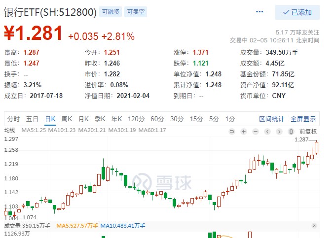 截至發(fā)稿,銀行etf(512800)漲2.81%,場內(nèi)成交額放大至4.45億元,成交價創(chuàng)上市以來新高!