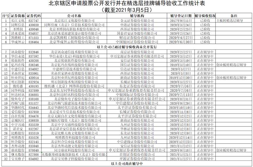 (原標題:北京轄區(qū)精選層小IPO輔導企業(yè)32家,光音網(wǎng)絡(luò)已退出)