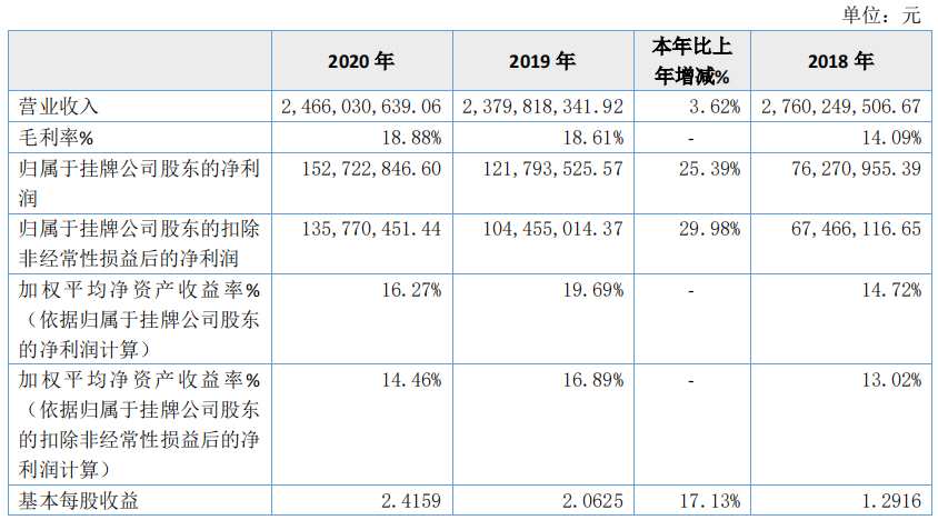4月14日,資本邦了解到,精選層公司翰博高新(833994.OC)披露《2020年年度報告》。2020年,翰博高新實現(xiàn)營業(yè)收入24.66億元,比2019年度23.80億元增長3.62%;歸屬于母公司股東的凈利潤1.53億元,比2019年度1.22億元增長了25.39%。
