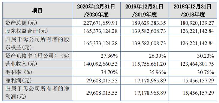 2018年-2020年,同心傳動實現(xiàn)營業(yè)收入1.23億元、1.16億元、1.40億元;歸屬于母公司所有者的凈利潤1545.62萬元、1717.90萬元、2960.80萬元。