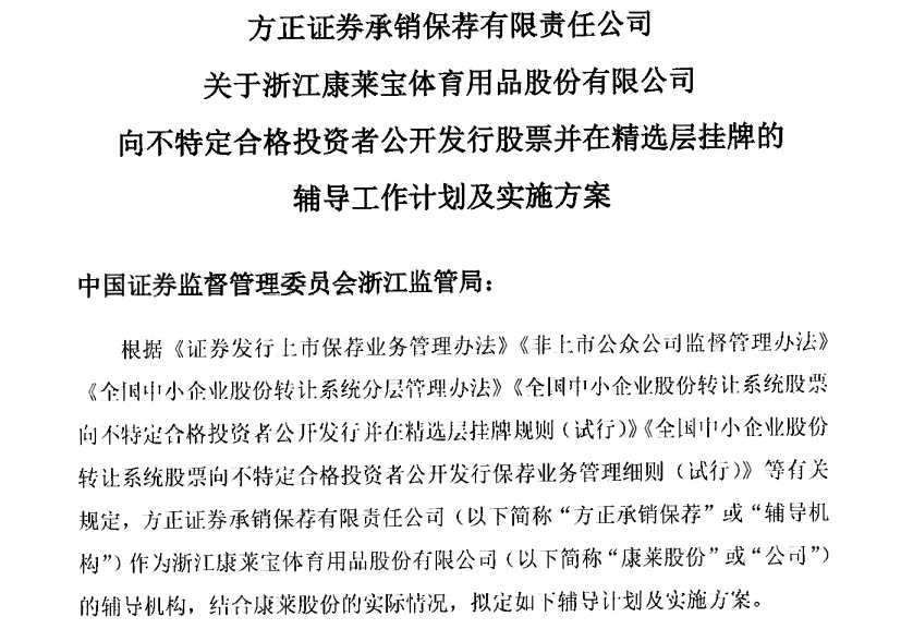 (原標題:康萊股份擬精選層小IPO,輔導機構為方正證券)