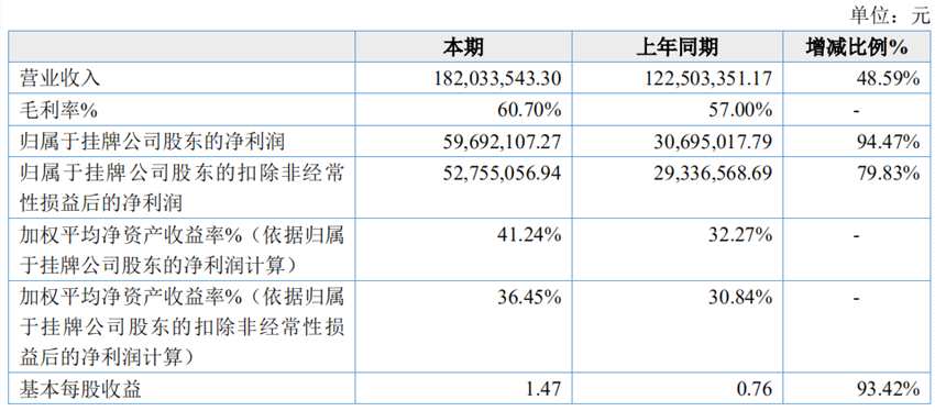 據(jù)公司此前披露的2020年年度報告,世窗信息2020年實現(xiàn)營業(yè)收入1.82億元,較上年同比增長48.59%,實現(xiàn)歸屬于掛牌公司股東的凈利潤5969.21萬元,較上年同比增長94.47%。