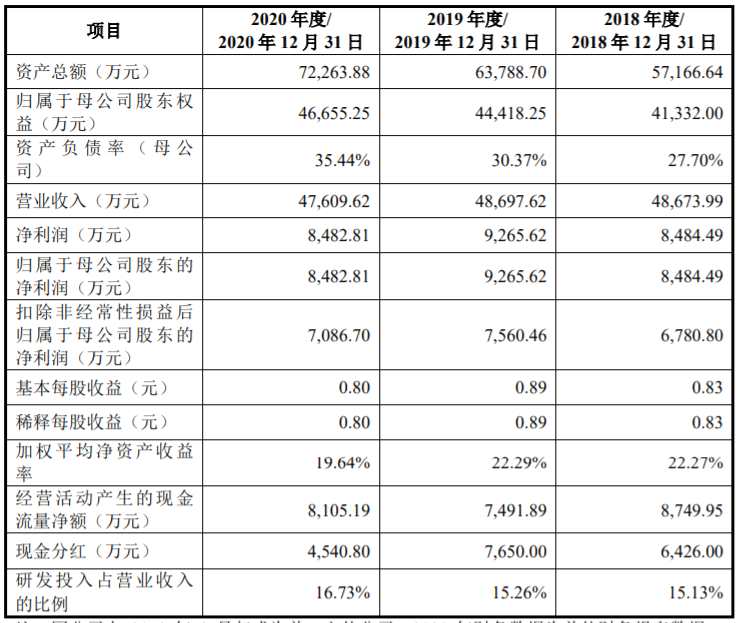 財(cái)務(wù)數(shù)據(jù)顯示,用友汽車2018年、2019年、2020年?duì)I收分別為4.87億元、4.87億元、4.76億元;同期對(duì)應(yīng)的凈利潤(rùn)分別為8,484.49萬元、9,265.62萬元、8,482.81萬元。資本邦注意到,公司2020年業(yè)績(jī)出現(xiàn)下滑的情況。