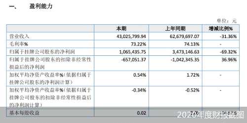 以為企業(yè)提供一體化解決方案的你好現(xiàn)在(北京)科技股份有限公司(以下簡稱“現(xiàn)在股份”)為例,根據(jù)現(xiàn)在股份披露的財報,2020年全年,現(xiàn)在股份實現(xiàn)營業(yè)收入4302.58萬元,同比減少1965.39萬元,減幅31.36%;歸屬于掛牌公司股東的凈利潤106.54萬元,同比減少 240.77萬元,減幅69.32%。