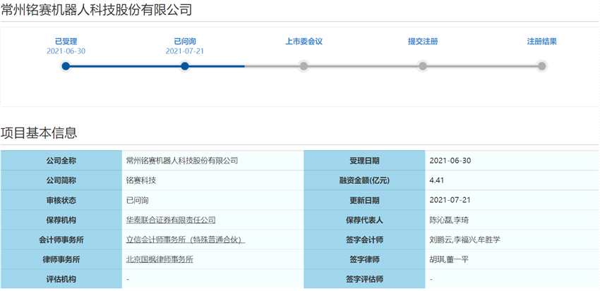 摘要 【銘賽科技背靠深創(chuàng)投等 新三板退市轉(zhuǎn)戰(zhàn)科創(chuàng)板獲問詢】7月22日,資本邦了解到,常州銘賽機(jī)器人科技股份有限公司(下稱“銘賽科技”)科創(chuàng)板獲上交所問詢。 7月22日,資本邦了解到,常州銘賽機(jī)器人科技股份有限公司(下稱“銘賽科技”)科創(chuàng)板獲上交所問詢。