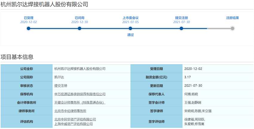 8月2日,資本邦了解到,杭州凱爾達(dá)焊接機(jī)器人股份有限公司(下稱“凱爾達(dá)”)科創(chuàng)板IPO提交注冊。