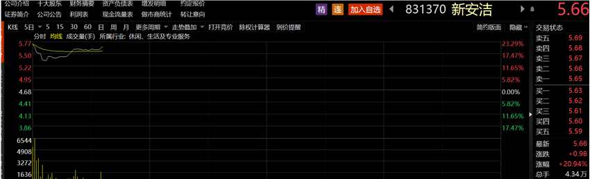 8月31日,新安潔股價高開超20%,截至發(fā)稿,公司股價為5.66元/股,漲超20%。此外,精選層板塊今日個股漲多跌少,再次引發(fā)火熱行情。其中,今日掛牌精選層的吉林碳谷,股價一度漲近200%。