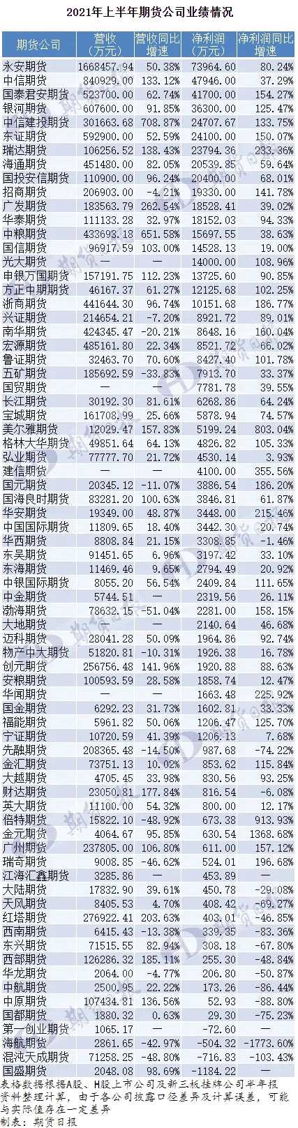 永安依舊“最賺錢” 混沌天成“栽了跟頭”!73家期貨公司上半年業(yè)績出爐 25家公司凈利潤增速超100% 最高暴增1368.68%
