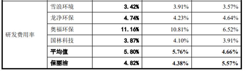 面對日益提高的環(huán)保要求和日益延伸的客戶需求,相比于降低價格,企業(yè)更需要不斷研發(fā)新技術(shù)、新產(chǎn)品,才能在市場競爭中獲取發(fā)展先機。但是,報告期內(nèi),保麗潔研發(fā)投入占比與同行業(yè)可比公司相比并不占據(jù)優(yōu)勢。