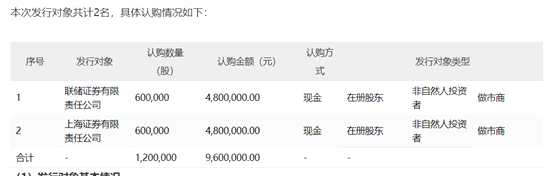 中宇萬(wàn)通本次定增認(rèn)購(gòu)價(jià)為8元/股,募集資金不超過(guò)960萬(wàn)元,僅有的2名認(rèn)購(gòu)對(duì)象分別是聯(lián)儲(chǔ)證券和上海證券,認(rèn)購(gòu)金額各為480萬(wàn)元。