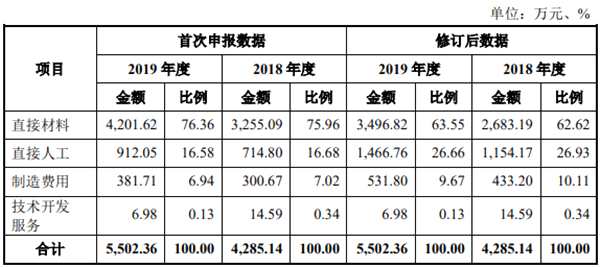其中,2018年及2019年,直接材料費(fèi)用分別減少571.90萬元、704.80萬元;直接人工費(fèi)用分別增加439.37萬元、554.71萬元;制造費(fèi)用分別增加132.53萬元、150.09萬元;第三方回款合計(jì)分別減少25.26萬元、61.19萬元。