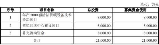 瑞科漢斯原擬在北交所公開發(fā)行股票數(shù)量不超過34,846,000股,發(fā)行底價(jià)為5.67元/股,原擬募集資金21,000.00萬元,分別用于年產(chǎn)5000套清潔供暖設(shè)備技術(shù)改造項(xiàng)目、營(yíng)銷網(wǎng)絡(luò)中心建設(shè)項(xiàng)目、補(bǔ)充流動(dòng)資金。