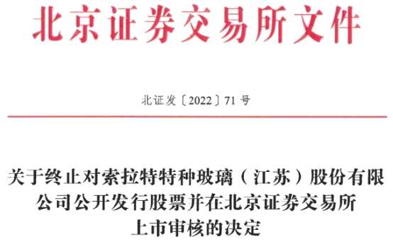 2022年11月10日,索拉特向北交所提交了《索拉特特種玻璃(江蘇)股份有限公司關于撤回向不特定合格投資者公開發(fā)行股票并在北京證券交易所上市申請文件的申請報告》。根據(jù)《北