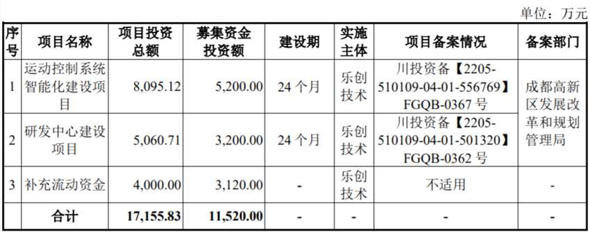 樂創(chuàng)技術(shù)2023年1月9日披露的招股說明書顯示,公司擬募集資金11,520.00萬元,用于運動控制系統(tǒng)智能化建設(shè)項目、研發(fā)中心建設(shè)項目、補充流動資金。
