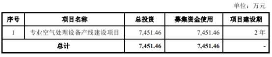中孚環(huán)境原擬募集資金7,451.46萬元,全部用于專業(yè)空氣處理設(shè)備產(chǎn)線建設(shè)項目。