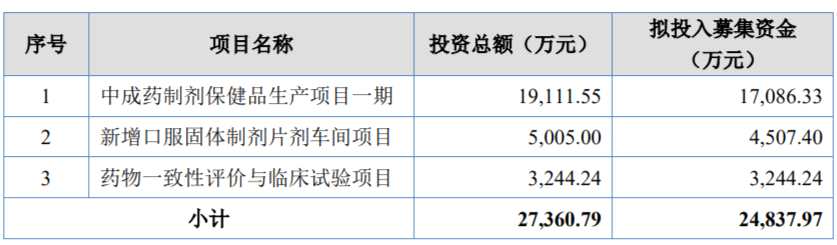 新贛江2023年1月9日披露的招股說明書顯示,公司擬募集資金24,837.97萬元,用于中成藥制劑保健品生產(chǎn)項(xiàng)目一期、新增口服固體制劑片劑車間項(xiàng)目、藥物一致性評(píng)價(jià)與臨床試驗(yàn)項(xiàng)目。