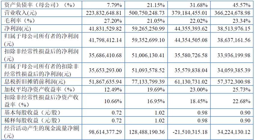 2019年至2022年1-6月,一致魔芋的營(yíng)業(yè)收入分別為36,622.47萬(wàn)元、37,918.45萬(wàn)元、50,075.02萬(wàn)元和22,383.26萬(wàn)元;凈利潤(rùn)分別為3,851.40萬(wàn)元、4,435.54萬(wàn)元、5,926.53萬(wàn)元和4,183.15萬(wàn)元;歸屬于母公司所有者的凈利潤(rùn)分別為3,863.72萬(wàn)元、4,435.45萬(wàn)元、5,935.27萬(wàn)元和4,179.84萬(wàn)元;扣除非經(jīng)常性損益后歸屬于母公司所有者的凈利潤(rùn)分別為3,405.94萬(wàn)元、3,557.98萬(wàn)元、5,109.36萬(wàn)元和3,565.33萬(wàn)元;經(jīng)營(yíng)活動(dòng)產(chǎn)生的現(xiàn)金流量?jī)纛~分別為3,422.41萬(wàn)元、-2,151.03萬(wàn)元、12,848.82萬(wàn)元和9,861.44萬(wàn)元。