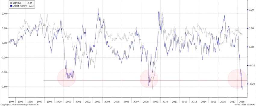 圖表四:聰明錢大幅出逃預(yù)示著市場危機(jī)。
