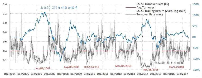 圖表三:上證50指數(shù)的換手率仍然過快,表明反彈仍將稍瞬即逝。
