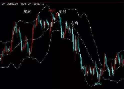 頭肩頂模式示意圖 再次說明一下,頭肩頂是個高勝率反轉(zhuǎn)形態(tài),但是嚴(yán)格按照教科書的標(biāo)準(zhǔn)模式,操作機(jī)會不是很多。通過布林線的角度,反而可以從另外的一個角度去觀察該形態(tài),它會打開一個新的視角,新的思維,新的模式。