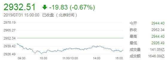 截至滬深股市全天收盤,上證綜指收報(bào)2932.51點(diǎn),下跌19.83點(diǎn),跌幅0.67%,成交額1646.08億元;深證成指收報(bào)9326.61點(diǎn),下跌72.49點(diǎn),跌幅0.77%,成交額1930.04億元;創(chuàng)業(yè)板指收報(bào)1570.39點(diǎn),下跌9.74點(diǎn),跌幅0.62%,成交額629.18億元。