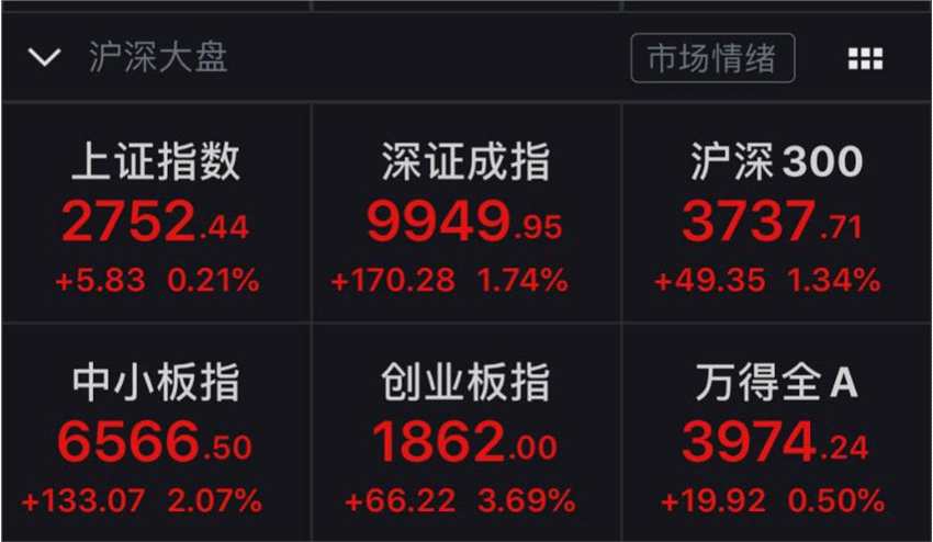 今日滬指大幅低開后迅速拉升,深證成指、創(chuàng)業(yè)板指也顯著反彈。截至午盤,滬指上漲0.21%,深證成指上漲1.74%,創(chuàng)業(yè)板指上漲3.69%。