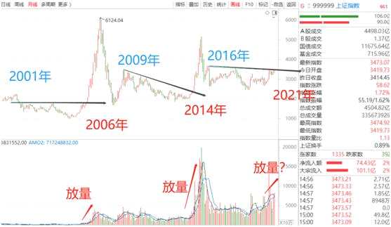 我們看上圖上證指數(shù)月線圖,每一次行情波動(dòng),都符合時(shí)間周期的規(guī)律,例如前兩次行情: